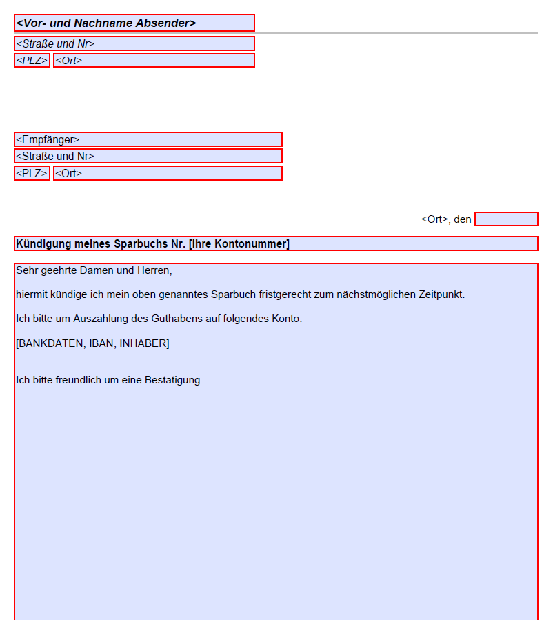 Kostenloses Muster für Vollmacht zur Auflösung eines Sparkontos zum Download. Vollmacht kann jederzeit gegenüber der Bank widerrufen werden. Einfaches und rechtssicheres Dokument für Sie.