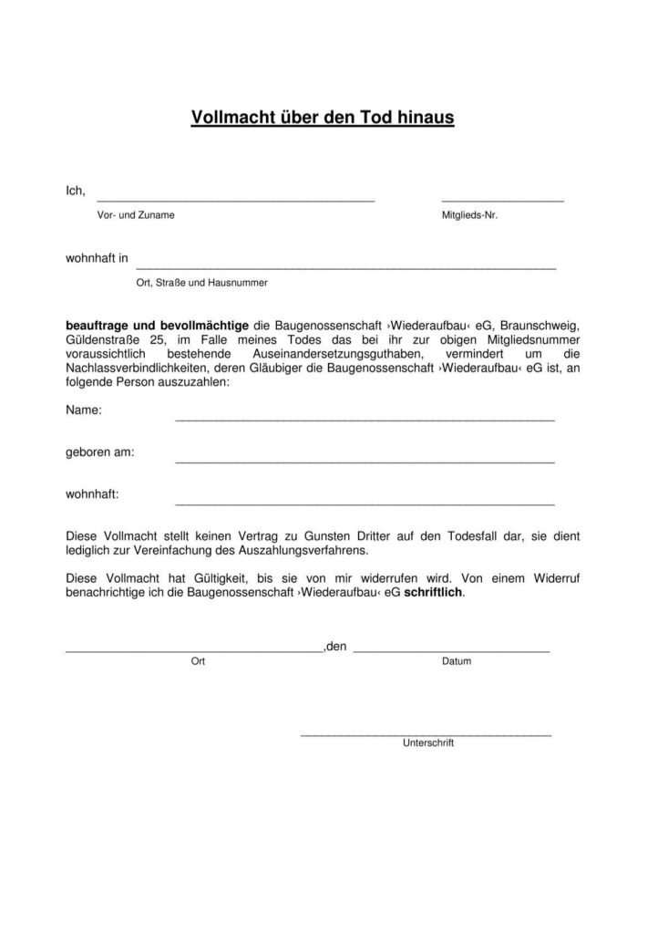 Kostenloses Muster für eine Vollmacht über den Tod hinaus herunterladen, gültig für Erben und wirksam auch nach dem Tod des Vollmachtgebers. Einfach und rechtssicher.