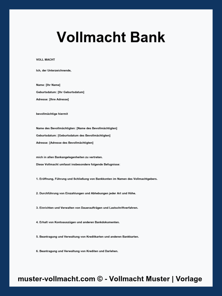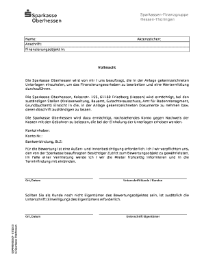 Kostenlose PDF-Vorlage: Vollmacht Muster Sparkasse Muster