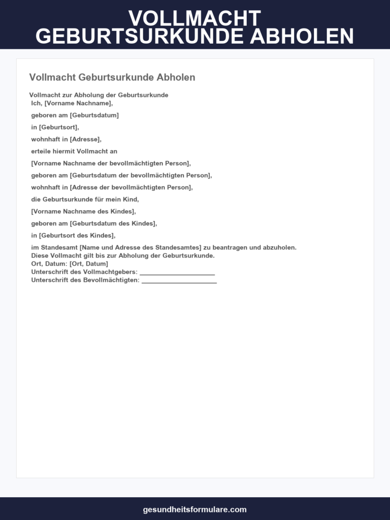 Kostenlose PDF-Vorlage: Vollmacht Geburtsurkunde Muster