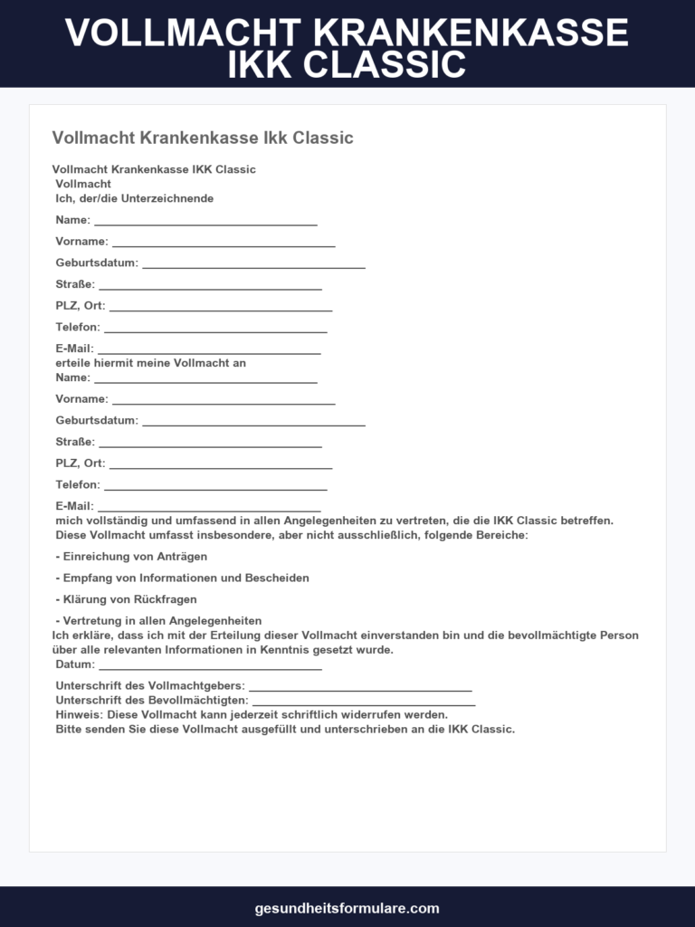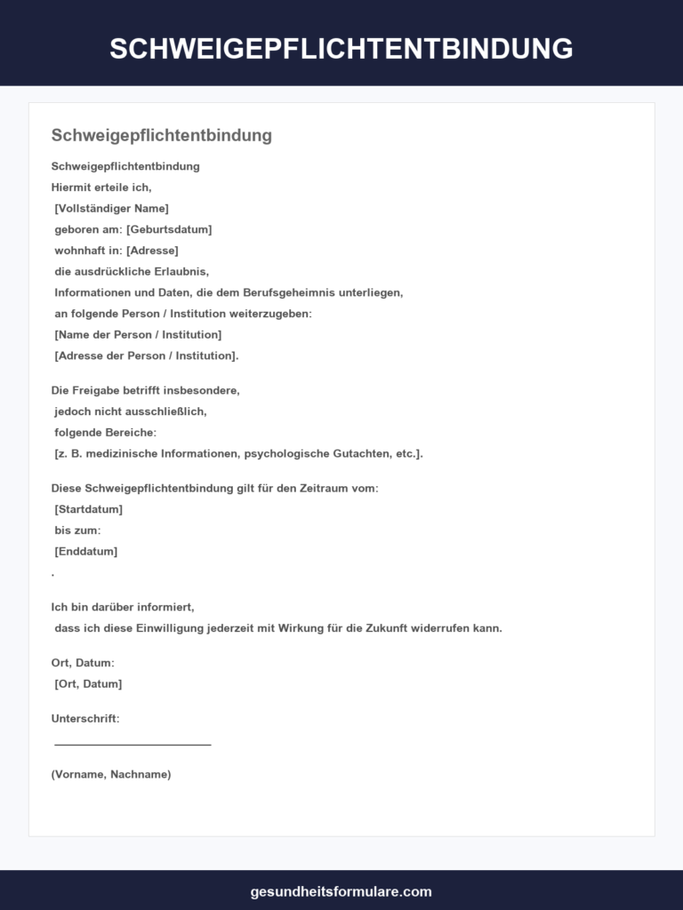 Kostenloses Muster für Vollmacht und Schweigepflichtentbindung zum Download – einfach und rechtssicher, jederzeit widerrufbar ohne Angabe von Gründen. Ideal für private und berufliche Zwecke.