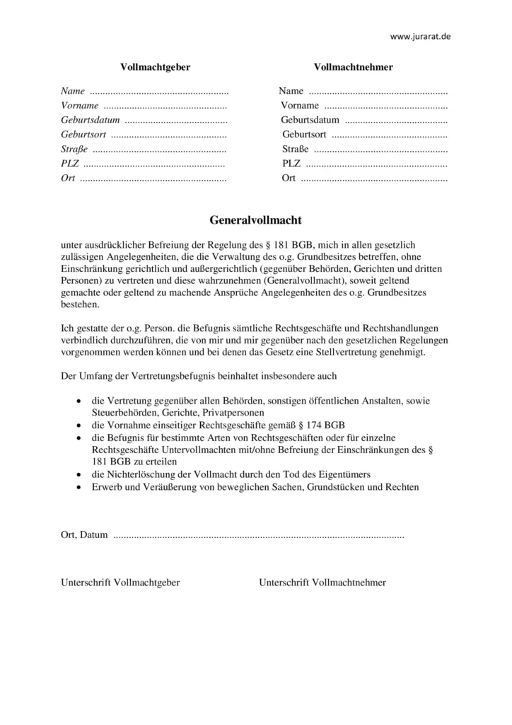 Kostenloses Vollmacht Wohnungskauf Muster zum Download – gültig nur bei Vorlage des Originals und im Besitz der Urkunde durch die bevollmächtigte Person. Jetzt herunterladen und rechtssicher handeln.